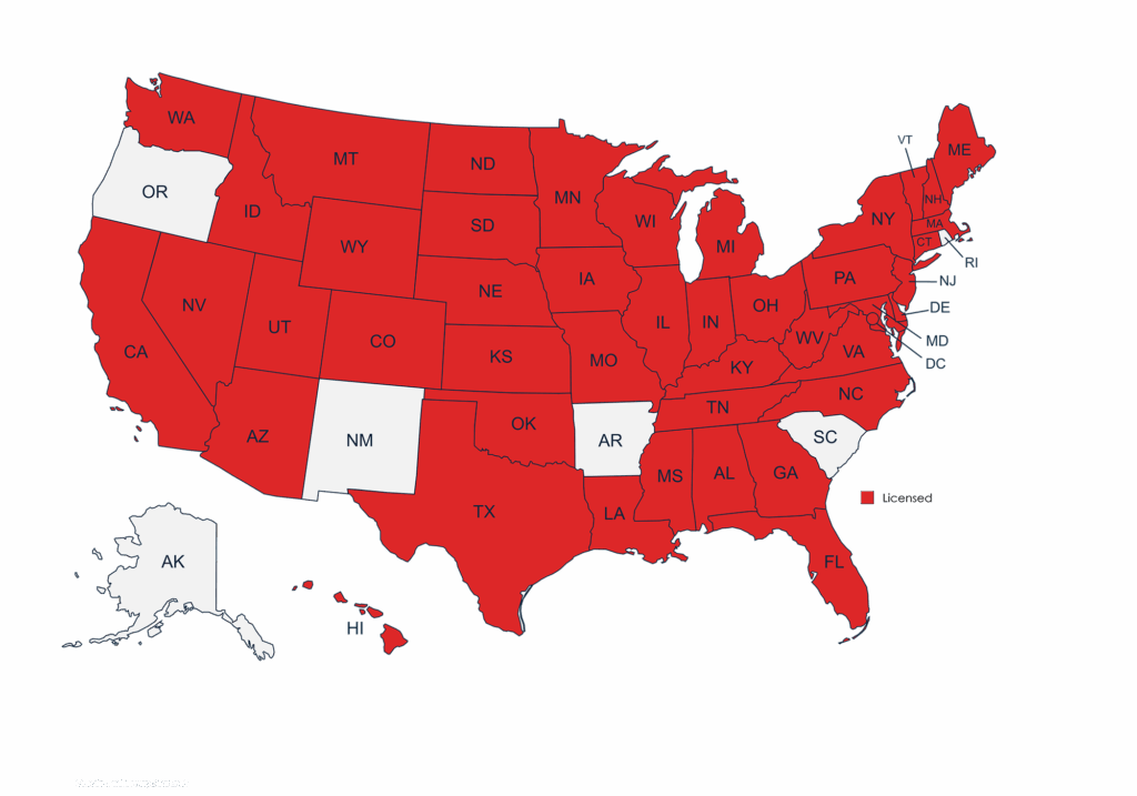 Alabama, Arizona, California, Colorado, Connecticut, Delaware, District of Columbia (DC), Florida, Georgia, Hawaii, Idaho, Illinois, Indiana, Iowa, Kansas, Kentucky, Louisiana, Maine, Maryland, Michigan, Minnesota, Mississippi, Missouri, Montana, Nebraska, Nevada, New Hampshire, New Jersey, New York, North Carolina, North Dakota, Ohio, Oklahoma, South Dakota, Tennessee, Texas, Utah, Vermont, Virginia, Washington, Washington DC, West Virginia, Wisconsin, Pennsylvania, and Wyoming.